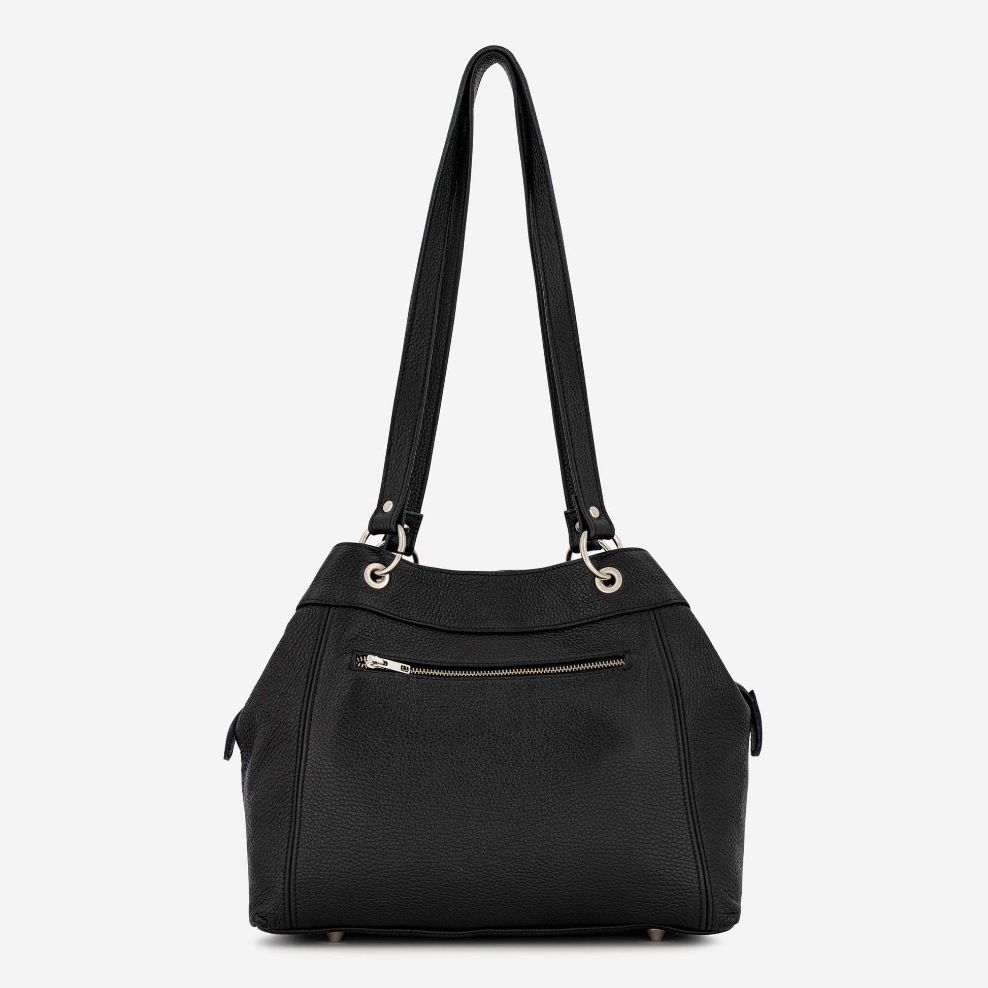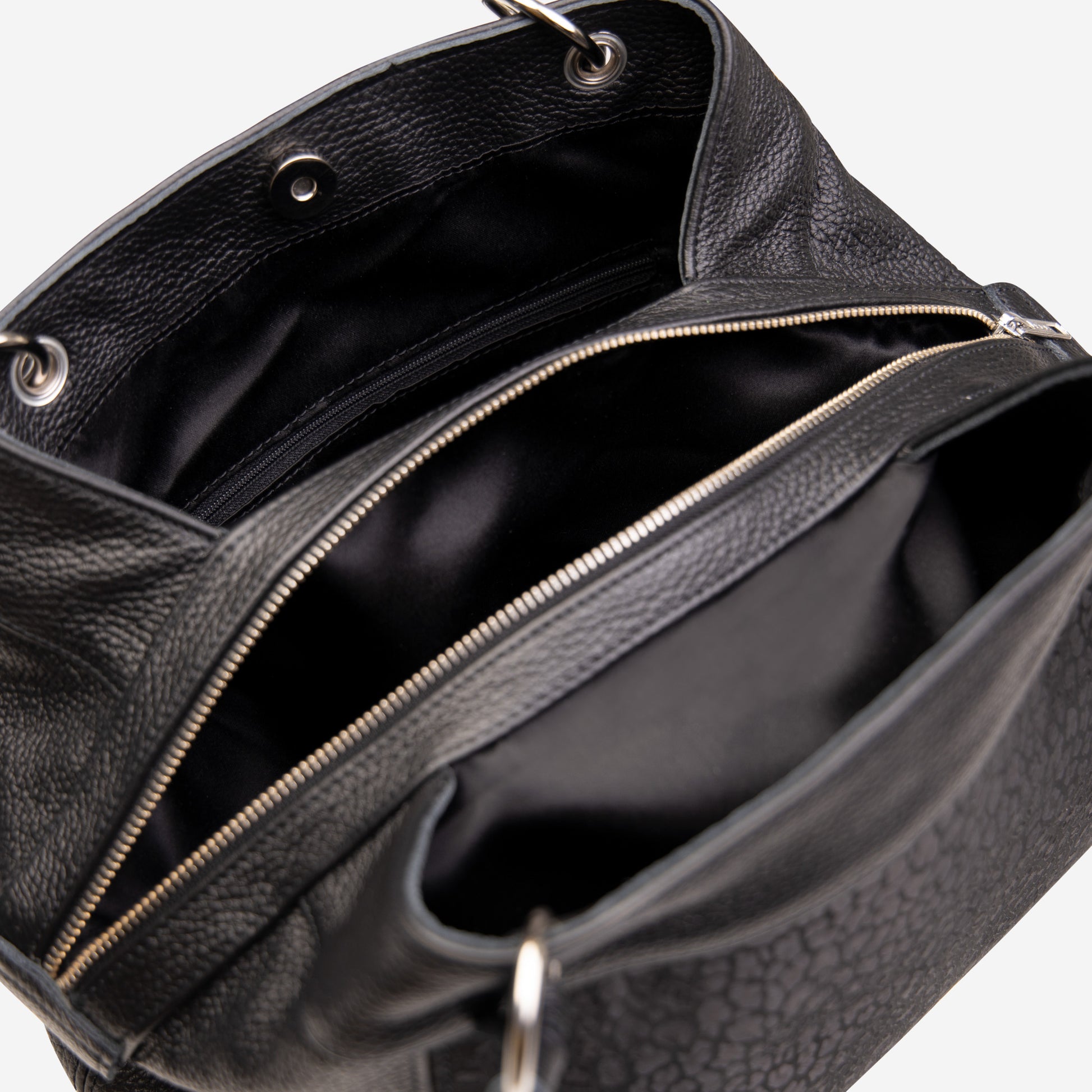 Practical and spacious everyday leather bag, unique and modern design which combines quick convenient access with highly secured closure.